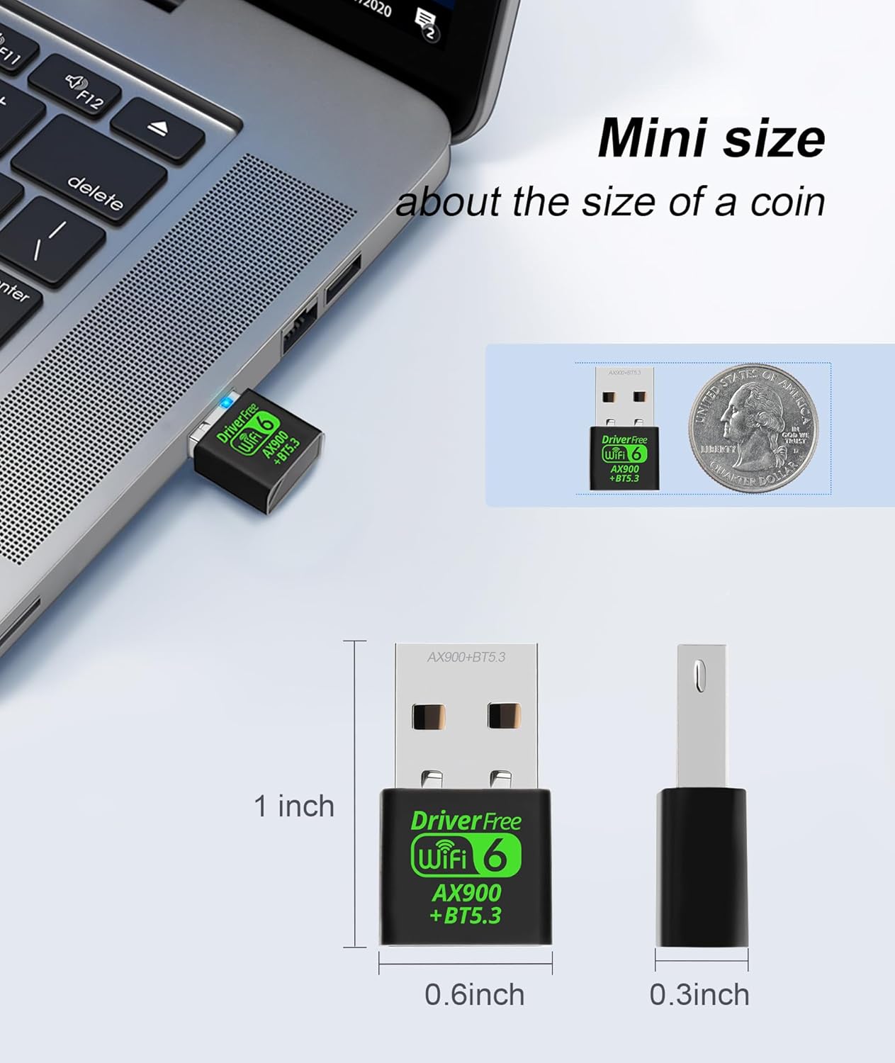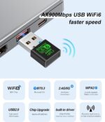 USB WiFi 6 Bluetooth Adapter for Desktop PC,AX900Mbps Dual Band 5/2.4Ghz Wireless Network Adapter ,Built-in Driver for PC/Laptop/Desktop 4dBi Antenna Compatible with Windows 10/11