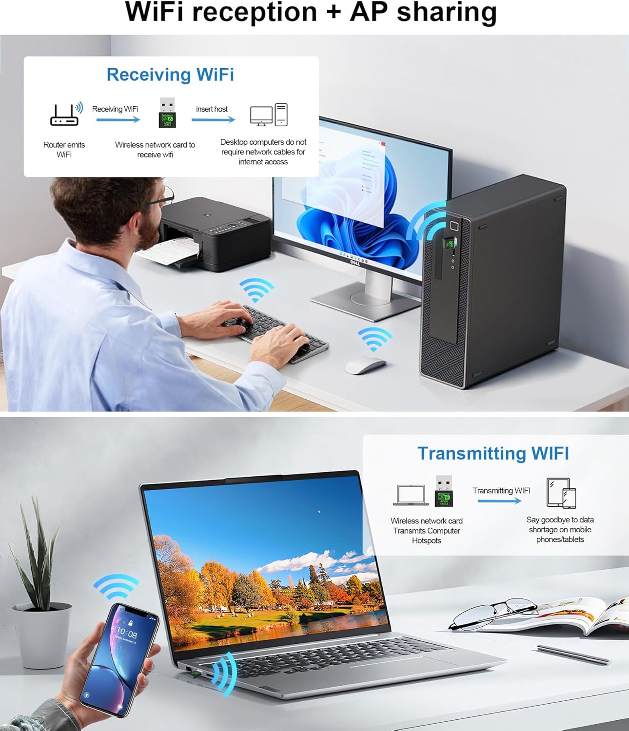 【Installation setup】The USB Bluetooth and WiFi drivers pop up automatically—just click to install on Windows 10 or 11. No CD or complicated setup needed.If you’ve installed WiFi drivers before, uninstall those first.