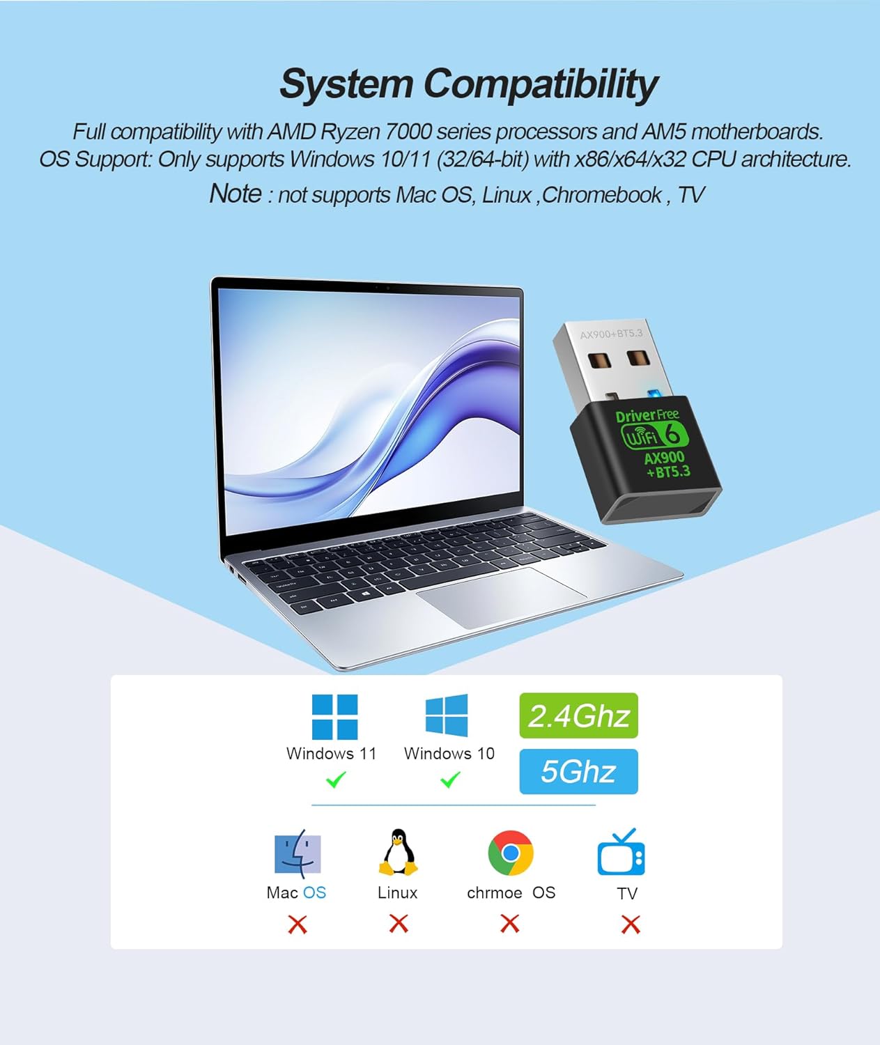 This wifi adapter supports win11/10,not supports Mac OS,Linux,Chromebook ! For most win11/10 Plug and Play