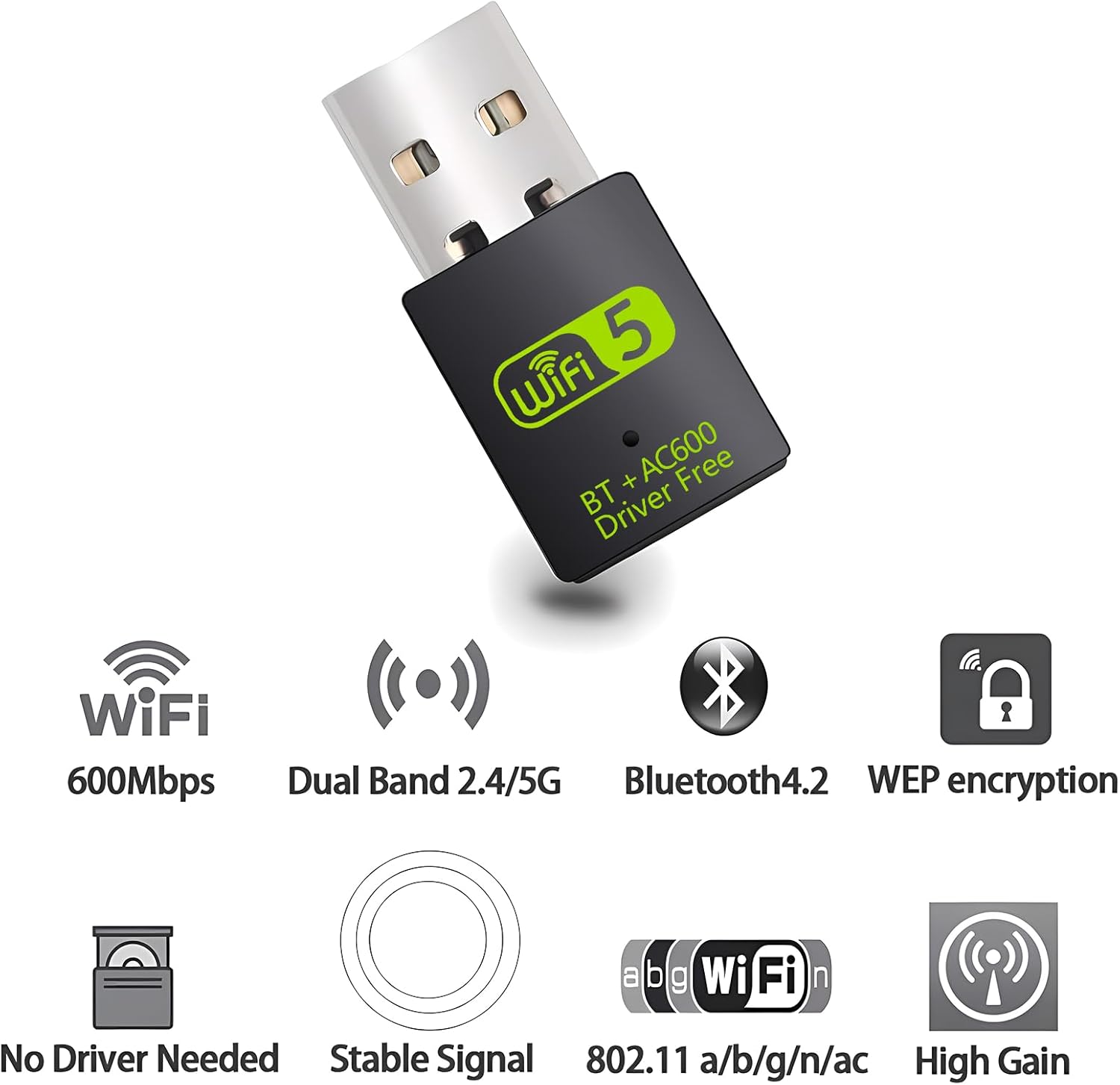 USB WiFi Bluetooth Adapter, 600Mbps Dual Band 2.4/5Ghz Wireless Network External Receiver, Mini WiFi Dongle for PC/Laptop/Desktop