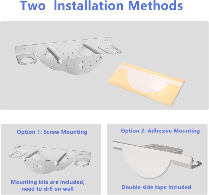 Easy Installation & Bonus Decor Stickers: The package includes 2 sets of mounts, all hardware (screws, anchors), and a user manual. Install via 2 methods: screwed (permanent, heavy-duty) or screwless (double-sided tape, damage-free). Also comes with 3 CD-pattern stickers to enhance the mount’s premium look.