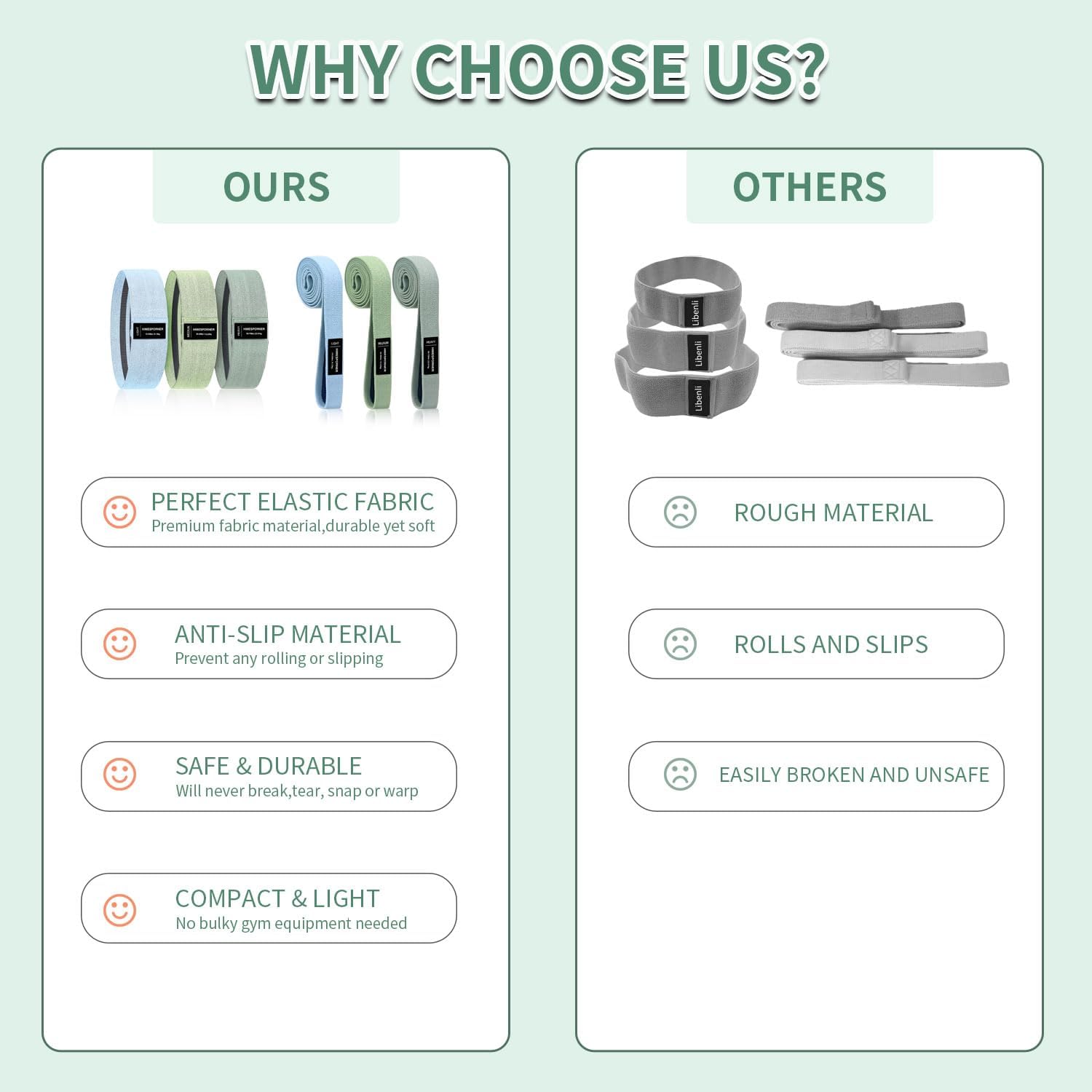 【Non-Slip, Comfortable and Durable】: Resistance bands are made of high-quality cotton and latex, thick and breathable, skin-friendly and enhance comfort. The latex on the inner ring provides high elasticity and makes the hip bands anti-slip and anti-rolling during exercise. Upgraded interface technology makes exercise bands more durable.